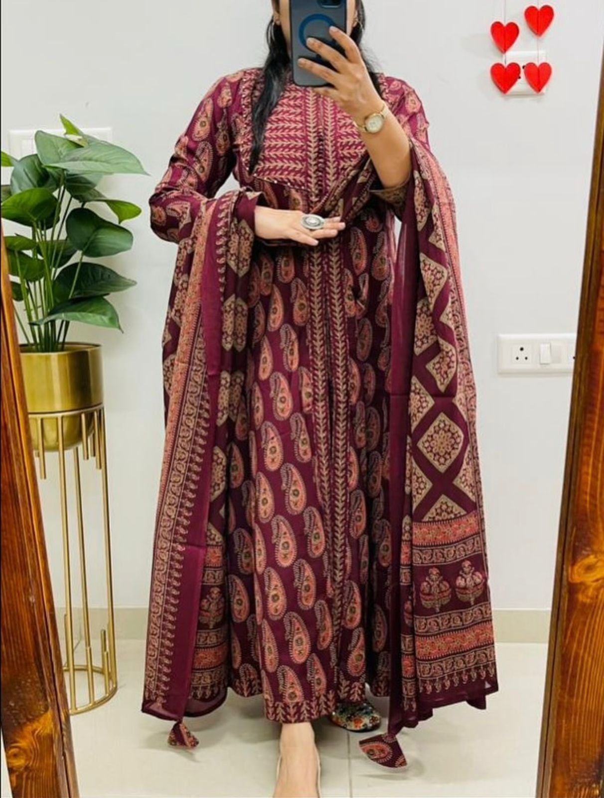 ✨ Zarqa Wine Royale Ajrakh Anarkali Set – where heritage meets modern grace.