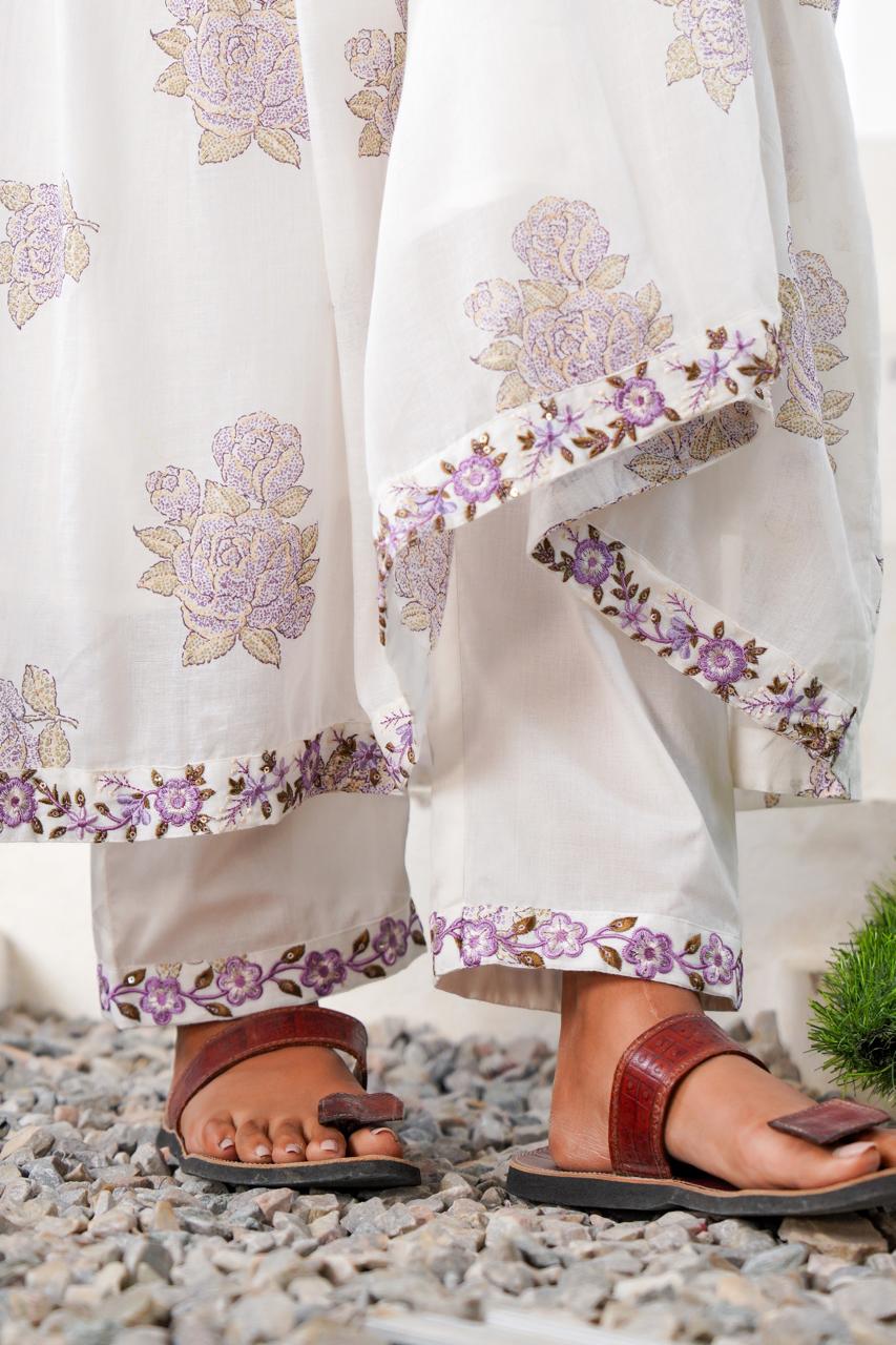 Made from the softest pure Mul cotton, this suit feels like a gentle whisper against your skin, perfect for warm days and easy evenings. Handcrafted with delicate lavender embroidery, every stitch tells a story of quiet elegance and thoughtful beauty.